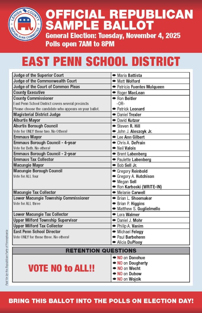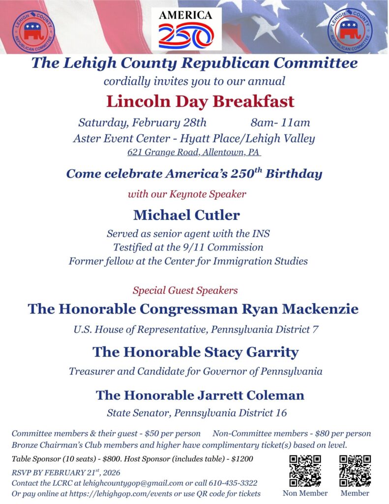 To Educate Lehigh County residents on current political affairs, our Constitutional rights and republican principles, and on all our principled Republican candidates.