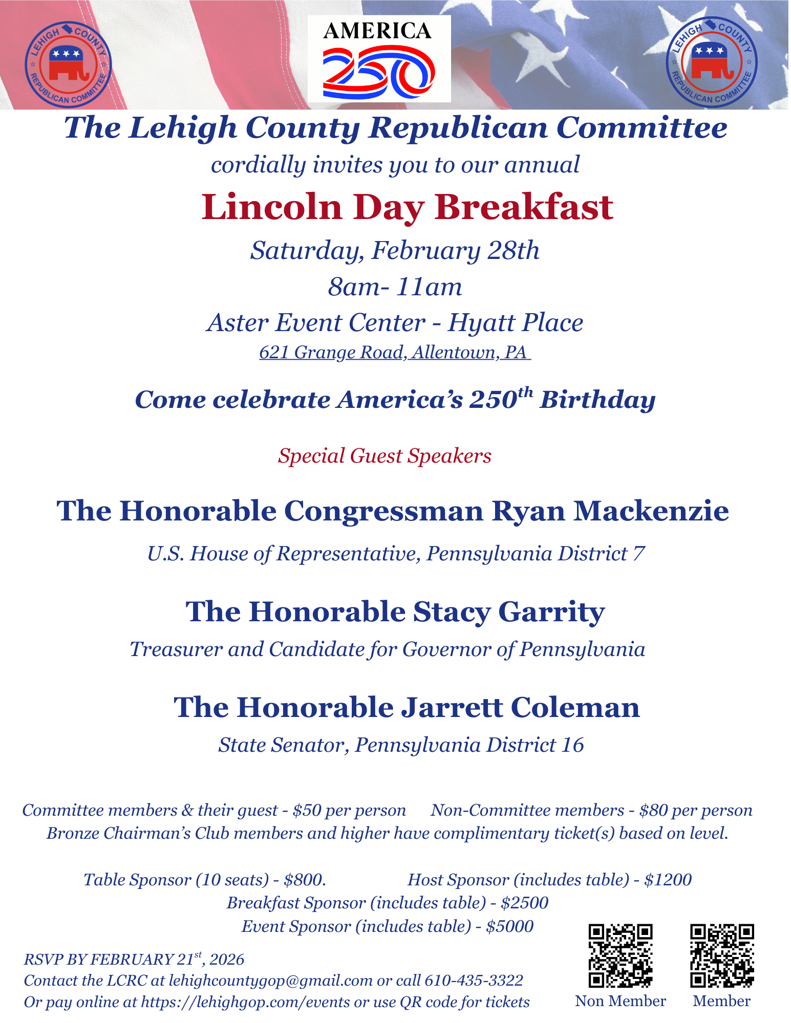 Join us for our annual Lincoln Day Breakfast